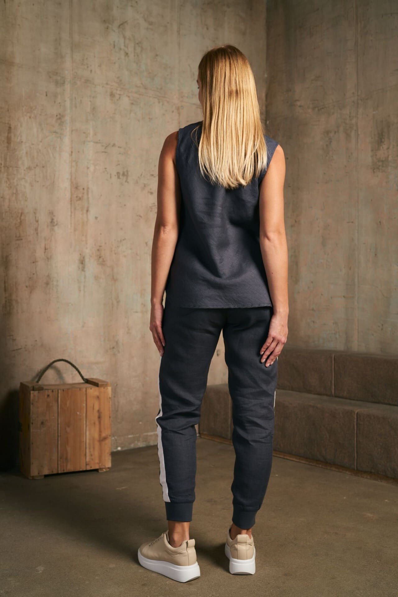Midnight navy linen blouse