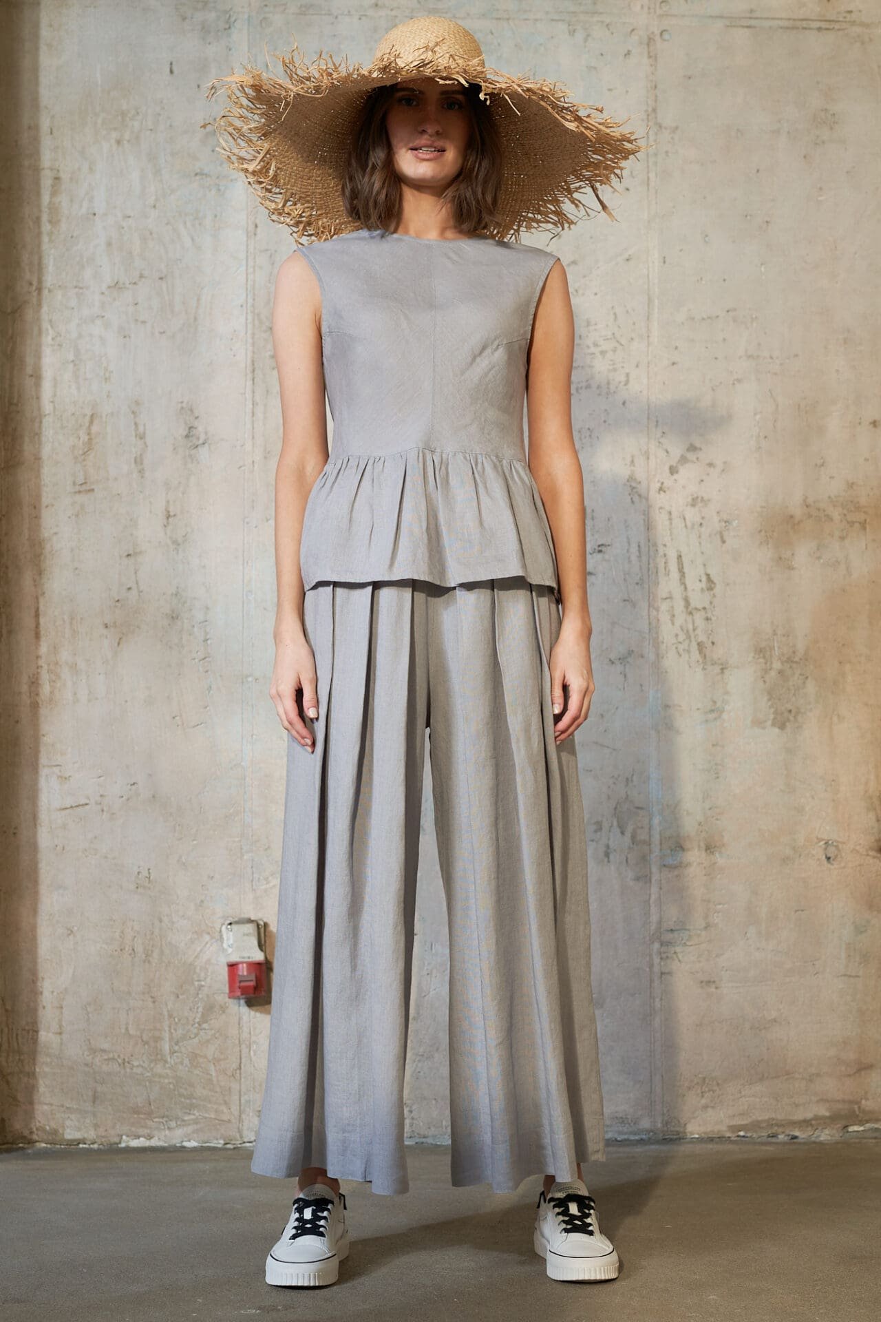 Tiesaus silueto klostuotos lininės kelnės