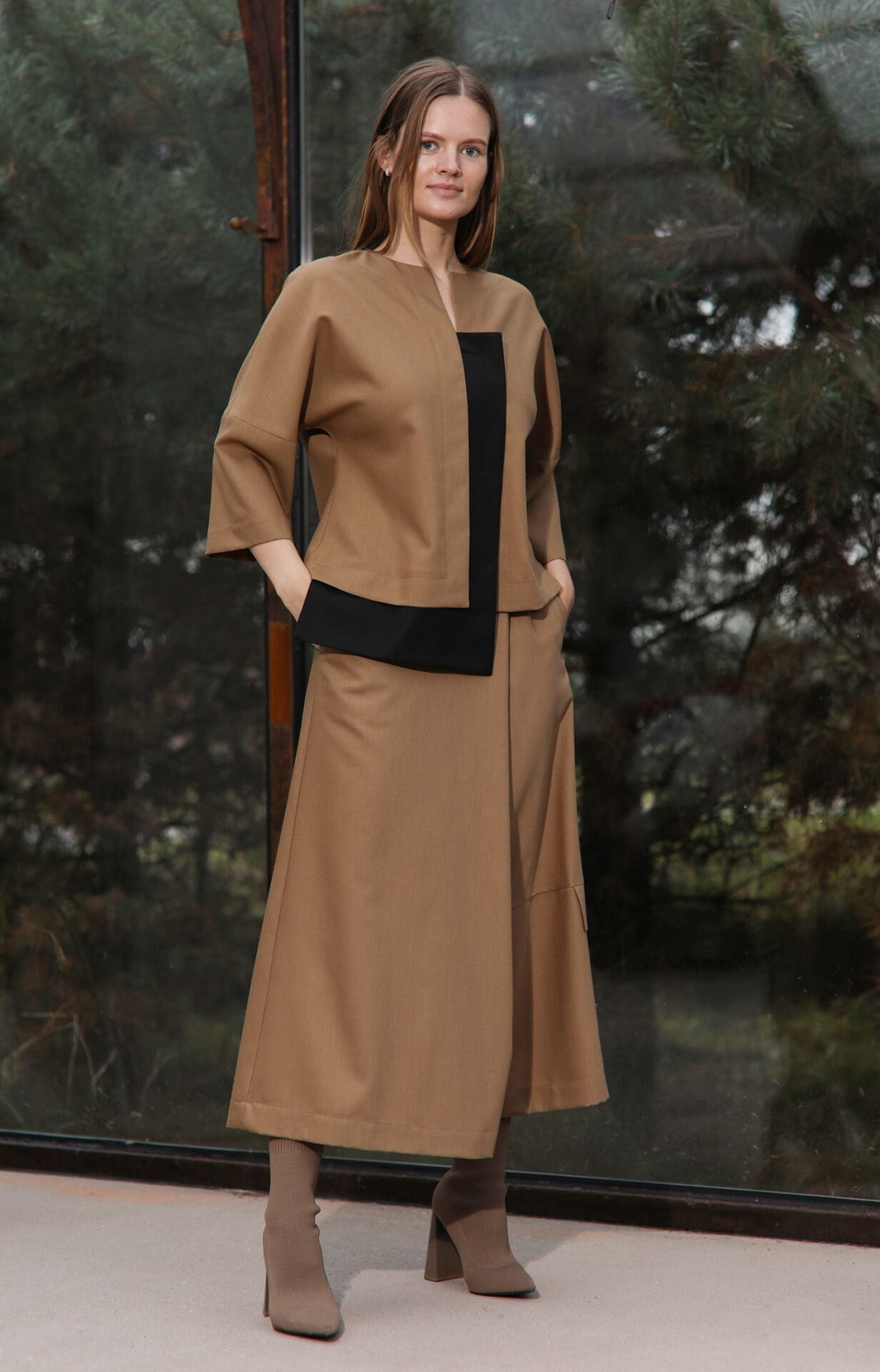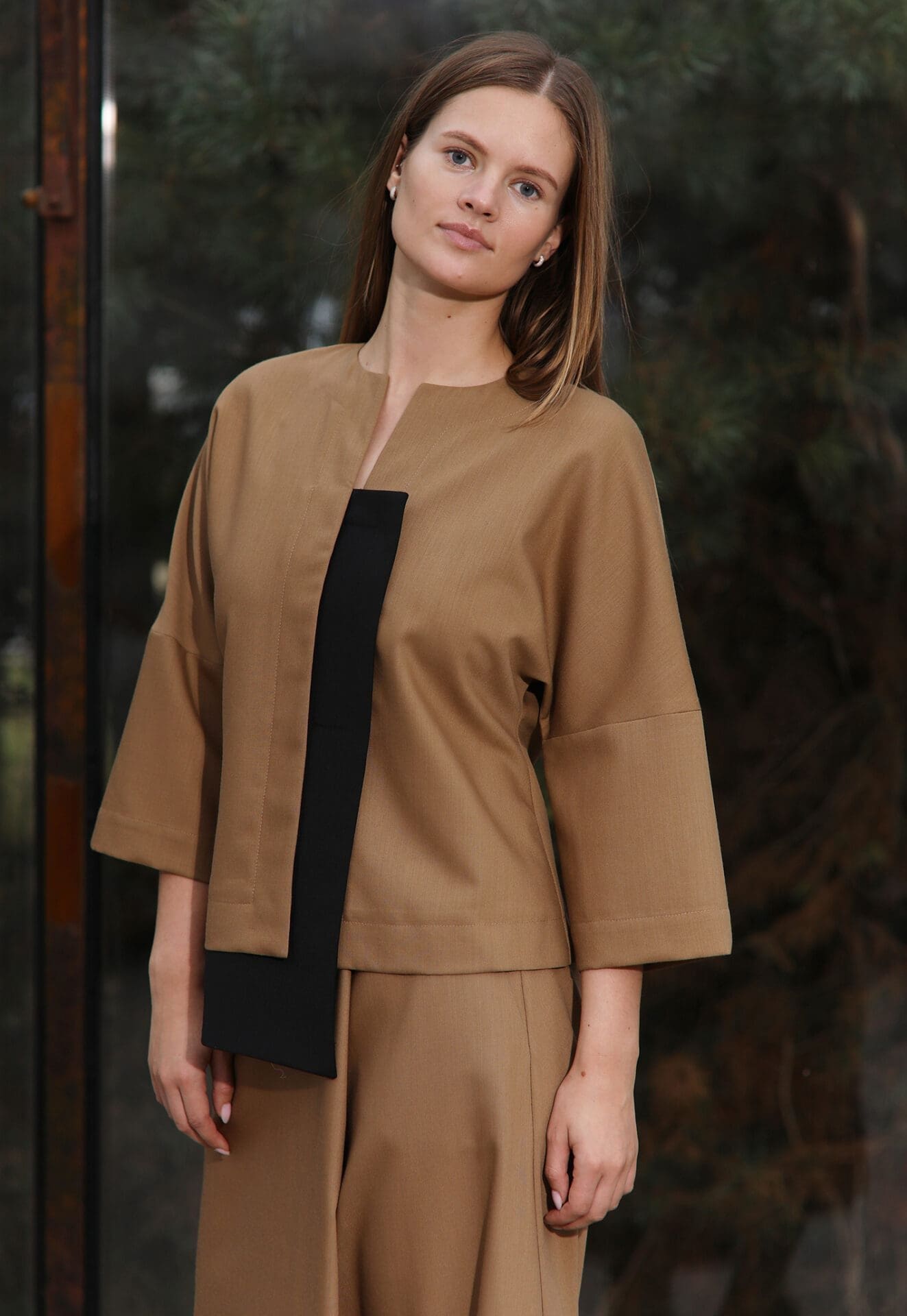 Asimetrinė kašmyro palaidinė. Dėl kimono tipo rankovių kirpimo yra patogi, nevaržanti judesių, o asimetrinės detalės suteikia jai išskirtinumo. Ji puikiai papildys tiek kiekvienos dienos derinius tiek skirtus ypatingom progoms.