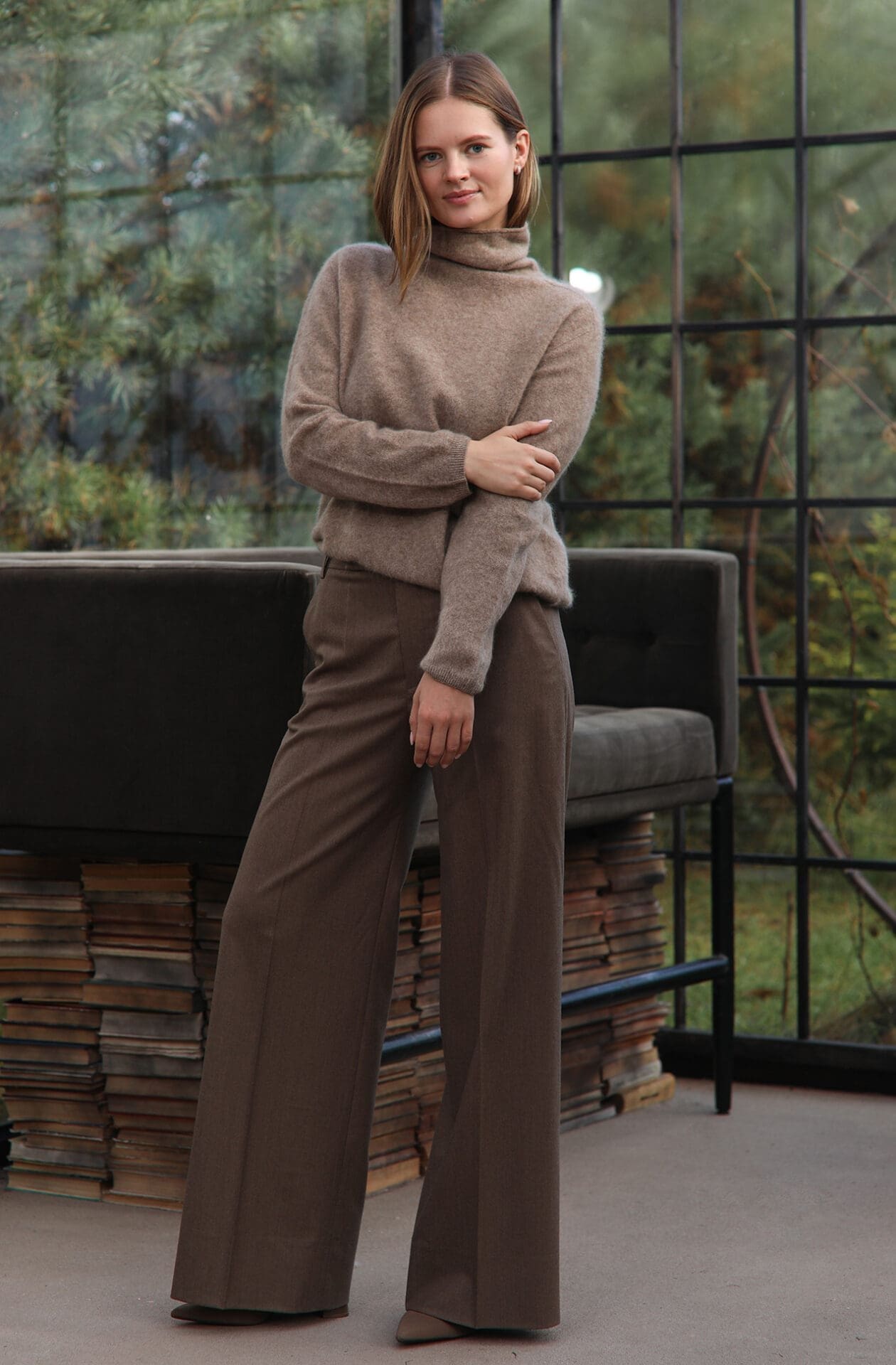 Klasikinio kirpimo kelnės iš kašmyro, kurios derės tiek kasdien tiek šventiniame derinyje. Kelnės su kišenėmis, užlygintu kantu ir šiek tiek aukštesniu juosmeniu. Puikus pasirinkimas visoms progoms.