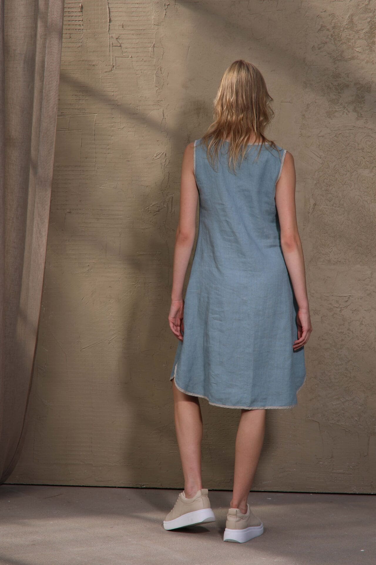 Lengva ir minimalistinio stiliaus 100 % lino suknelė, sukurta patogiam ir stilingam vasaros įvaizdžiui.  Laisvai krentanti suteikia judėjimo laisvę ir subtilią eleganciją.